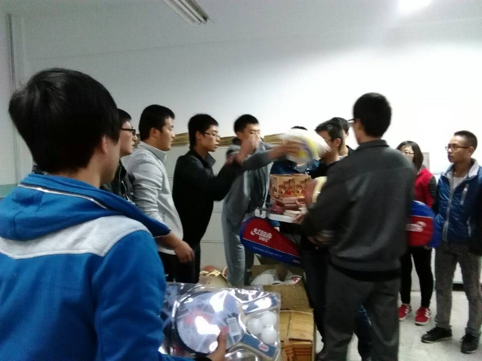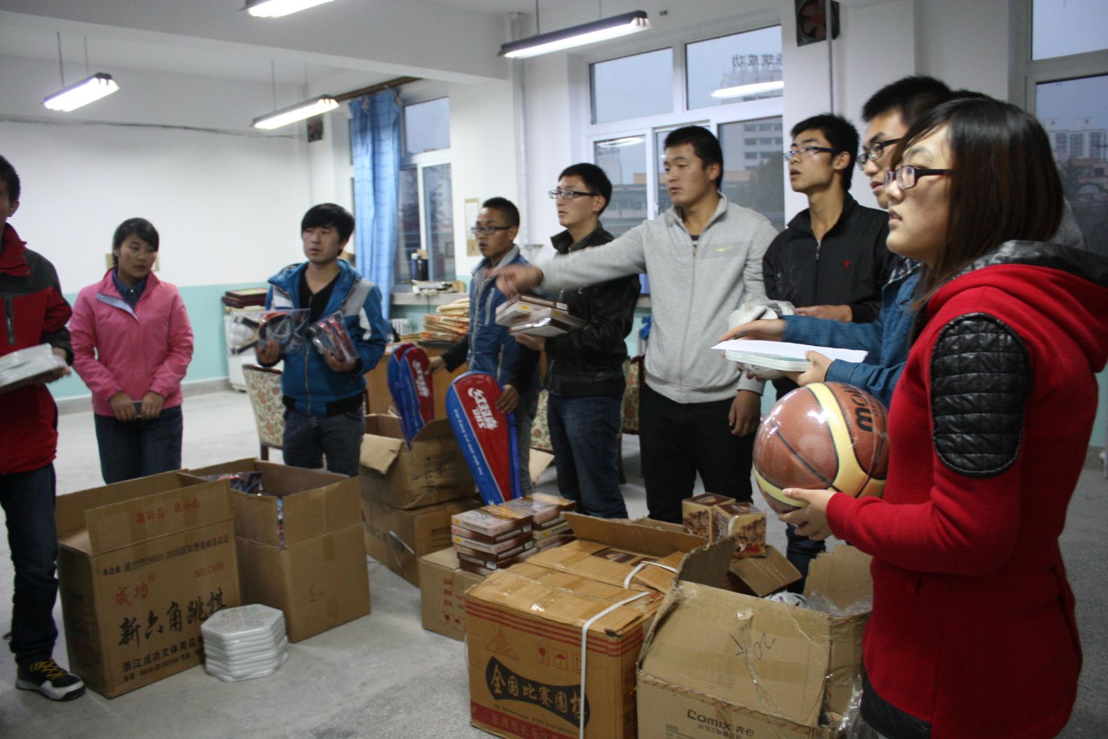 为了丰富校园文化、营造良好的校园文体活动氛围、学院给各班配发了体育用品。11月2日晚,石油化学工程系召集13、14级各班班长、体育委员,将这些体育用品向各班发放。