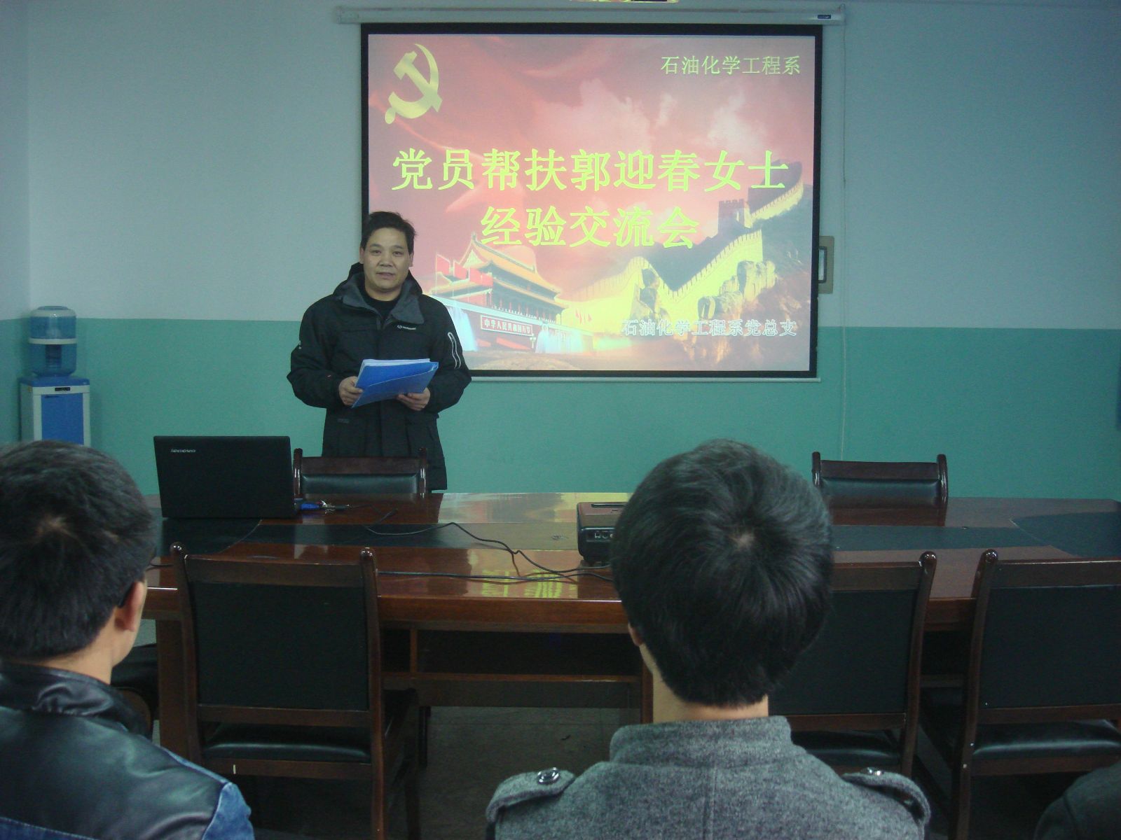 会上,老党员畅谈了一年来帮扶郭迎春女士的经验,提出了改进的方法及措施,给新发展的党员讲感受传经验,号召新党员接过“接力棒”,在帮助别人中享受快乐。之后辅导员讲评了一年来党员帮扶郭迎春女士的成果,查找了在帮扶过程中存在的问题,进一步强调开展帮扶郭迎春女士对于石化系建立党员义工岗位的意义和重要性,鼓舞新党员积极主动参与帮扶郭迎春女士义工活动,在活动中不断提高党员自身政治素质。