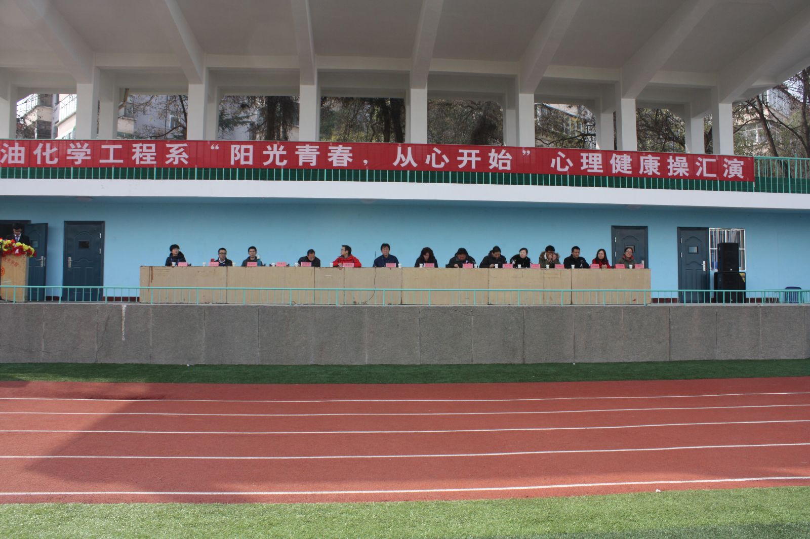 11月15日下午,石油化学工程系在西区田径场组织“阳光青春 从心开始”心理健康操汇演。石化系系领导、辅导员、14级班主任、13级各班学生代表、14级全体同学约1300余人参加了本次汇演。