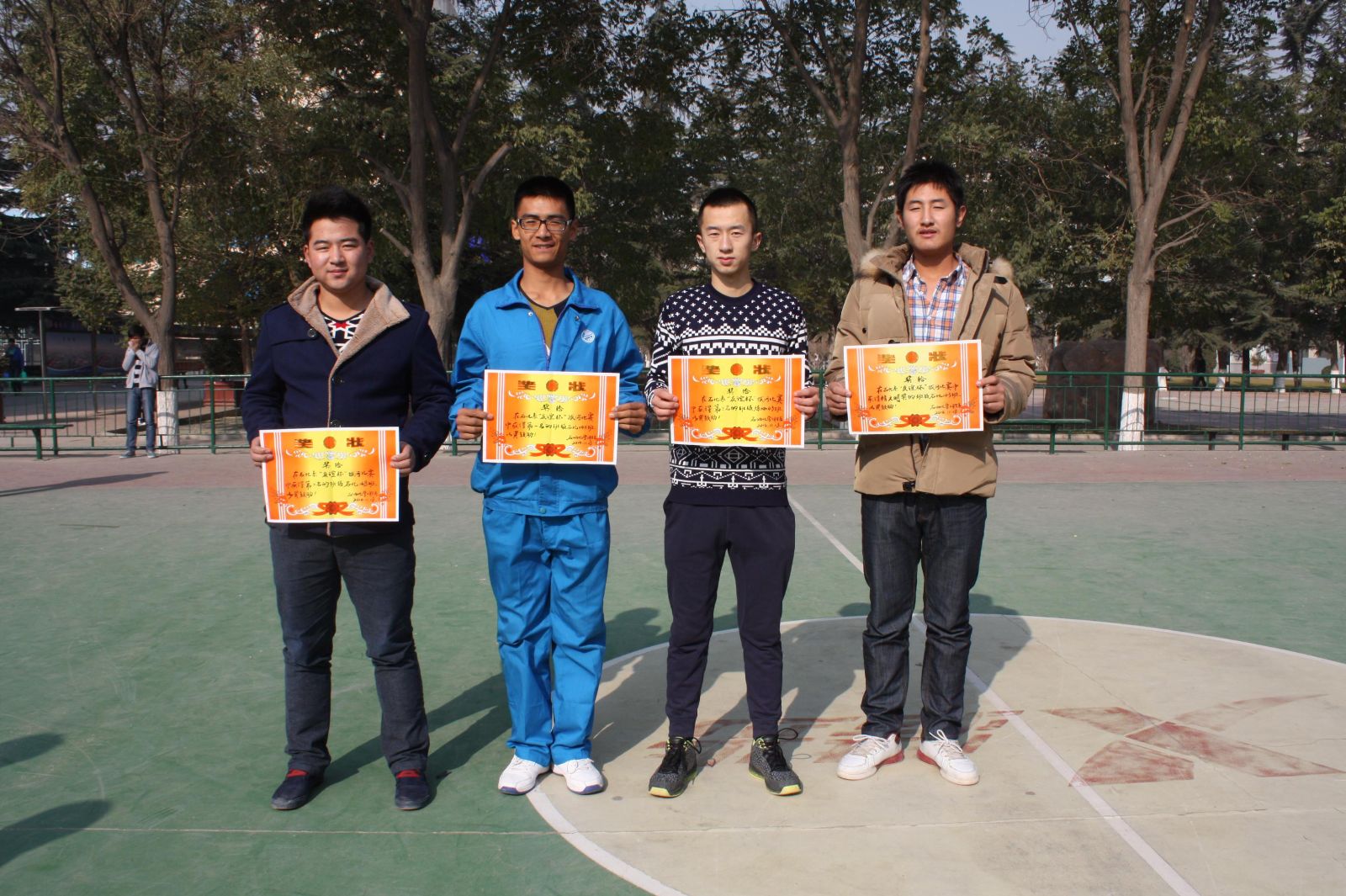 比赛以班为单位,每班10男5女,比赛采取淘汰赛,三局两胜的原则,先赢2局者胜晋级下一轮。比赛中虽然天气比较寒冷,但参赛者热情不减,比赛场面热火朝天,拉拉队气势恢宏,参赛者斗志昂扬。经过激烈的角逐,最终,石化144班获得本次比赛的第一名、石化148班获得第二名、炼油143班获得第三名。