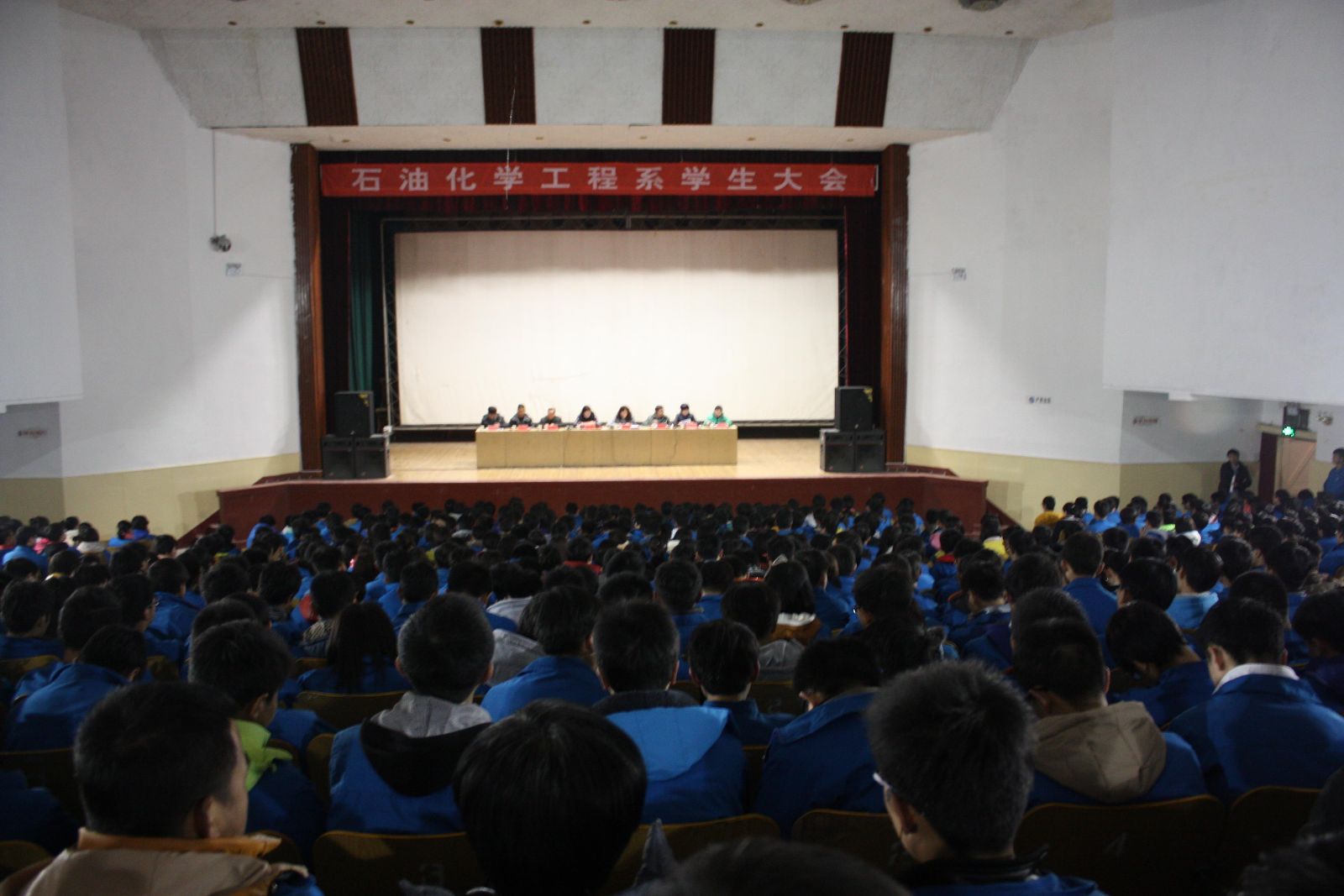 12月17日晚,石油化学工程系于西区礼堂召开2014-2015学年第一学期期末考试动员大会,石化系系领导、辅导员、13级班团干部、14级全体同学参加了本次会议。