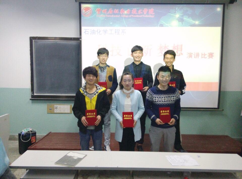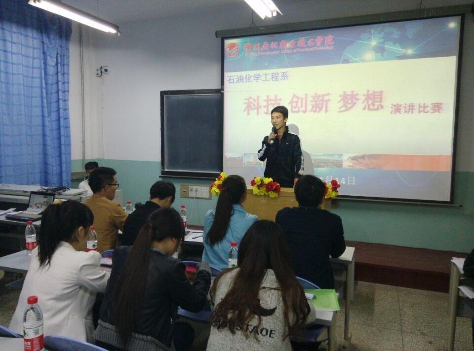 为了加强学生的对科技创新的兴趣,提高同学们的创新能力,4月14日晚,石油化学工程系在石化楼207教室举办了“科技·创新·梦想”主题演讲比赛,13级、14级拔尖班学生共100余名同学参加了此次活动。