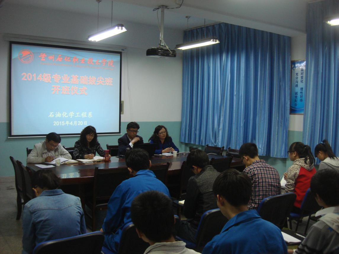 经过前期的笔试与面试,石油化学工程系2014级专业基础拔尖班选拔完成,来自14级各班的38名同学入选本届专业基础拔尖班。4月20日晚,开班仪式在石化楼309会议室举行,石化系领导参加了本次开班仪式。