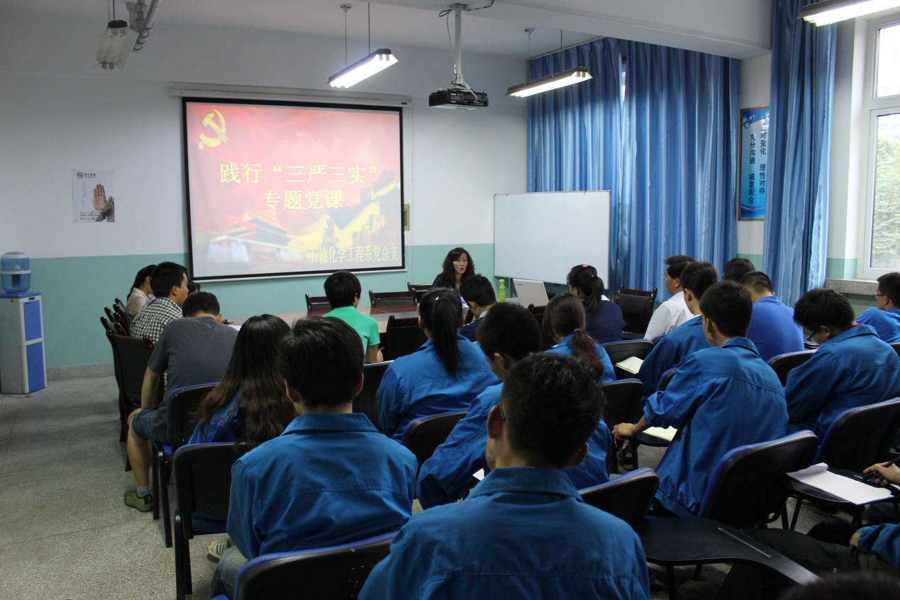 为了进一步增强党员的修身意识,培养党员树立良好的作风。石油化学工程系党总支于6月17日晚在石化楼三楼会议室开展了“三严三实”专题党课,教职工党员和学生党员参加了此次党课培训。