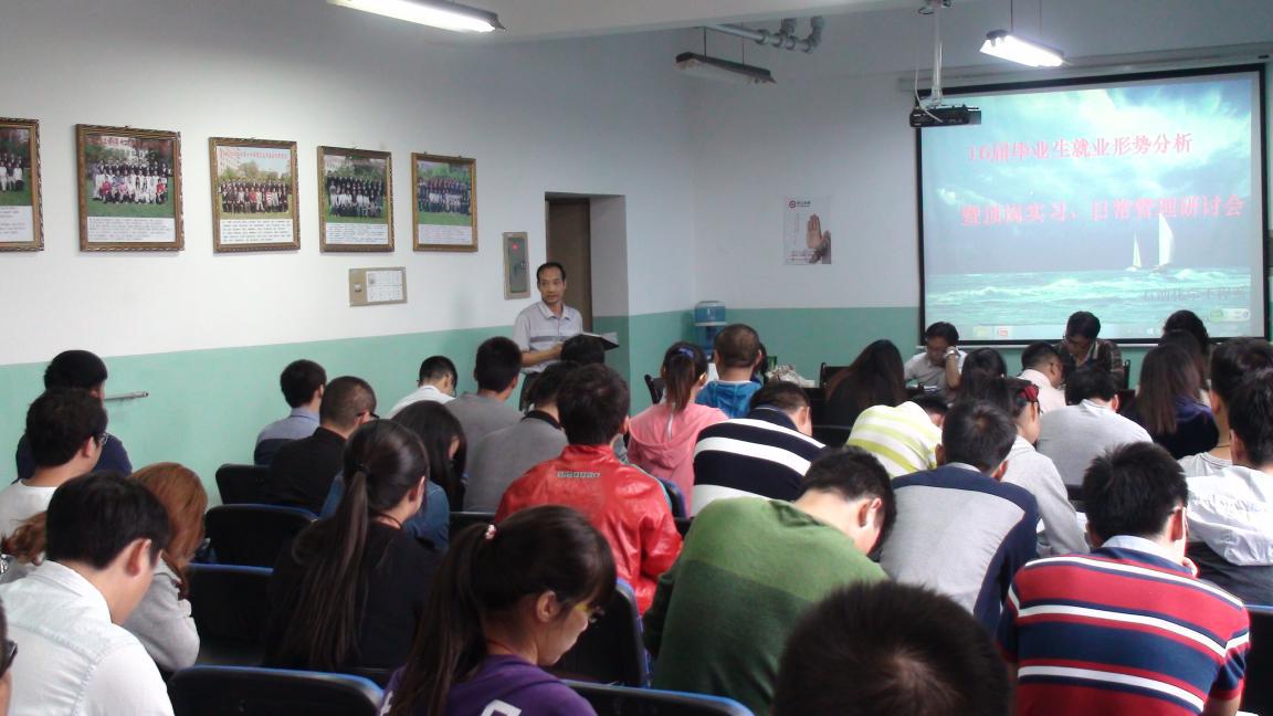 随后系辅导员用详实的数据对目前2016届毕业生就业形势、政策规定及企业选人、用人的标准、要求等情况做了详细的解释。针对毕业生在就业单位选择上出现的从众心理、攀比心理、等待心理等主要问题,建议班主任以班级宿舍为整体,逐一了解学生就业动向,要求他们能够居安思危,端正态度,树立良好的就业观,并希望同学们随时关注学院就业网站,切实保证同学们及时就业。辅导员还对大三学生在日常管理中存在的问题做了强调,希望班干部能够积极配合班主任的工作,合理的利用手中权力,为班级在校的同学做榜样。