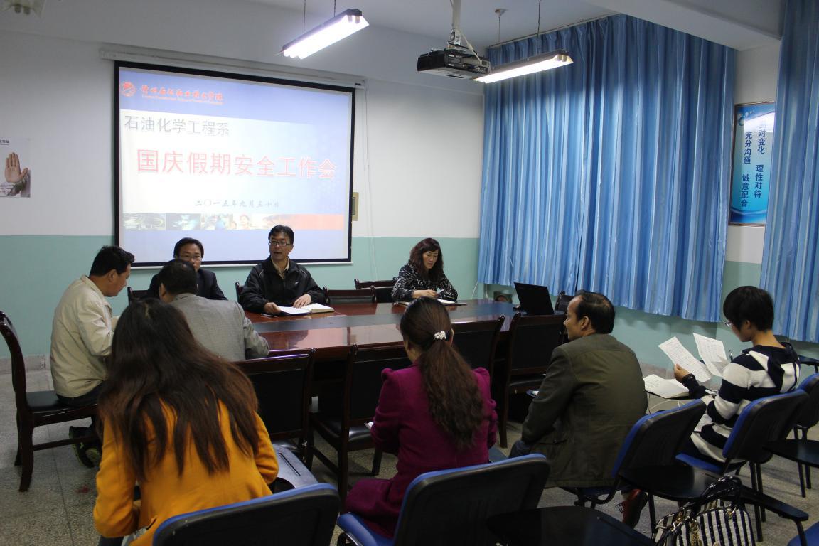 为做好学生管理工作,保持校园良好秩序,石油化学工程系积极利用各种途径和平台,多措并举开展国庆小长假安全教育“五个一”活动,以确保全体学生人身、财物安全,使全体学生度过欢乐、祥和的节日假期。