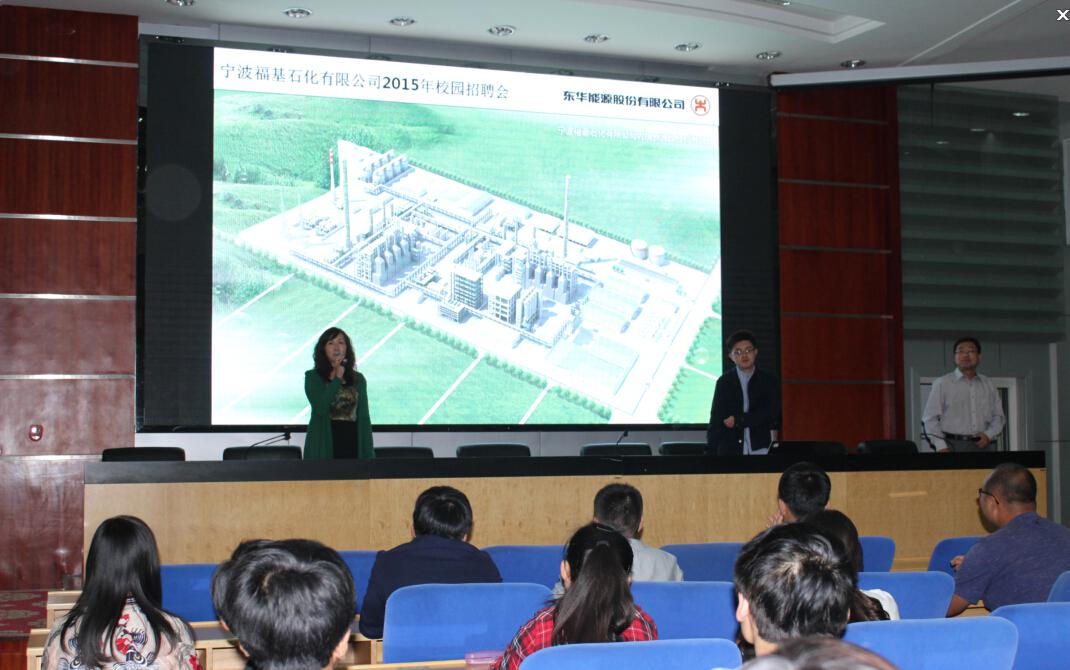 二是精心组织、搭建平台。于9月中下旬先后组织了东华能源有限责任公司、万华化学(宁波)容威聚氨酯化工有限公司、新疆天之泽化工有限公司等5家单位来石化系遴选毕业生。