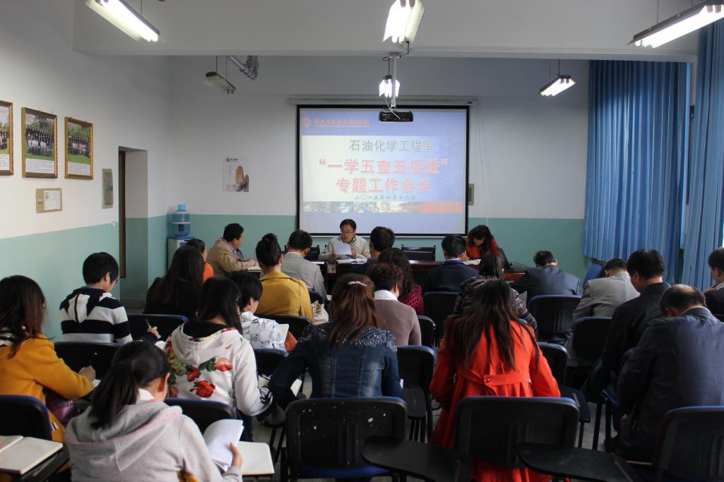 为实现学院2015年持续推进学生教育管理服务,加强平安校园建设的总体目标,进一步加强学生思想政治教育、学生日常管理及各项服务工作,充分发挥各级学生工作人员的主观能动性。根据学院工作安排,石油化学工程系将开展为期一个月的“一学五查五促进”主题教育活动。