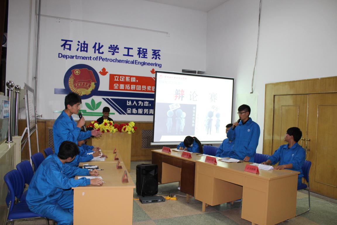 10月18日晚,石油化学工程系在西区大学生活动举办2015级新生辩论赛决赛,正反方代表队由初赛、复赛选出的8名优秀辩手组成。