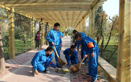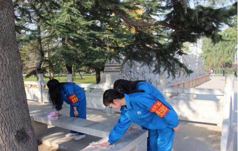 下午2点,志愿者前往金城公园,清理道路和水面上的落叶,捡起扔在死角处的纸屑和烟头,擦除标志牌、体育器材与路凳上的灰尘,替行动不便的老人们买东西并帮助清扫工倒垃圾。经过同学们两个多小时辛勤劳动,公园里没有了落叶、纸屑与烟头,一眼看去,公园焕然一新。