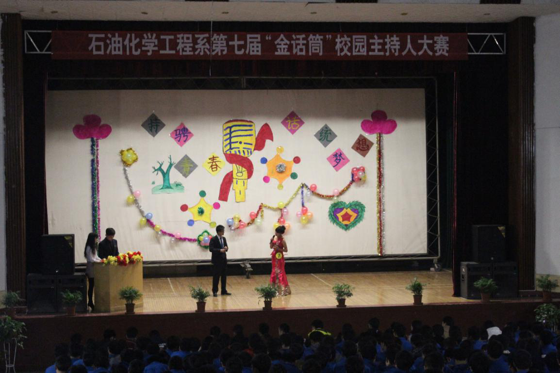 “靓声新主播,展我真风采”,为进一步丰富同学们的课余生活,增强大学生综合素质,展示当今大学生的青春风采,推动校园精神文明建设,12月11日晚,石油化学工程系于西区礼堂举办了第七届“金话筒”校园主持人大赛。