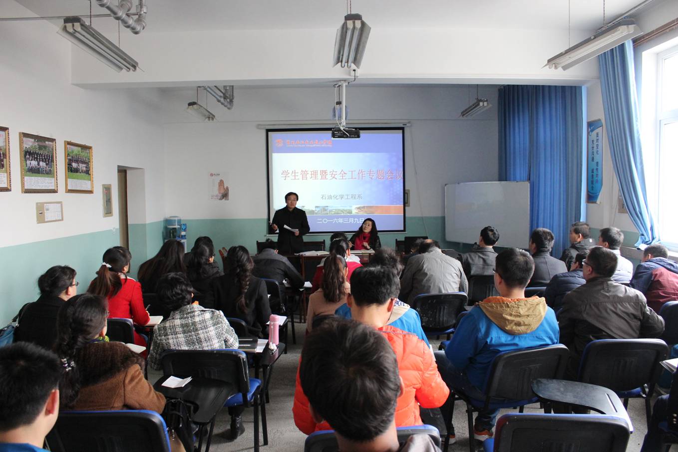 为了提高班主任和同学们的安全意识,加强对学生的安全教育,石油化学工程系于3月9日下午在石化楼会议室开展了学生管理和安全教育专题研讨,对近期的学生管理及安全教育工作进行了部署。石化系党总支副书记唐蓉萍、夏德强及全体班主任参加了此次会议。