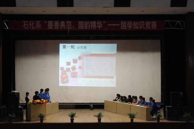 适逢学校六十周年华诞,为弘扬中国传统文化知识,石油化学工程系于3月23日晚在西区礼堂组织开展以“墨香典范,国韵精华”为主题的国学知识竞赛。来自15级的18个参赛组和15级全体学生参加了此次竞赛。