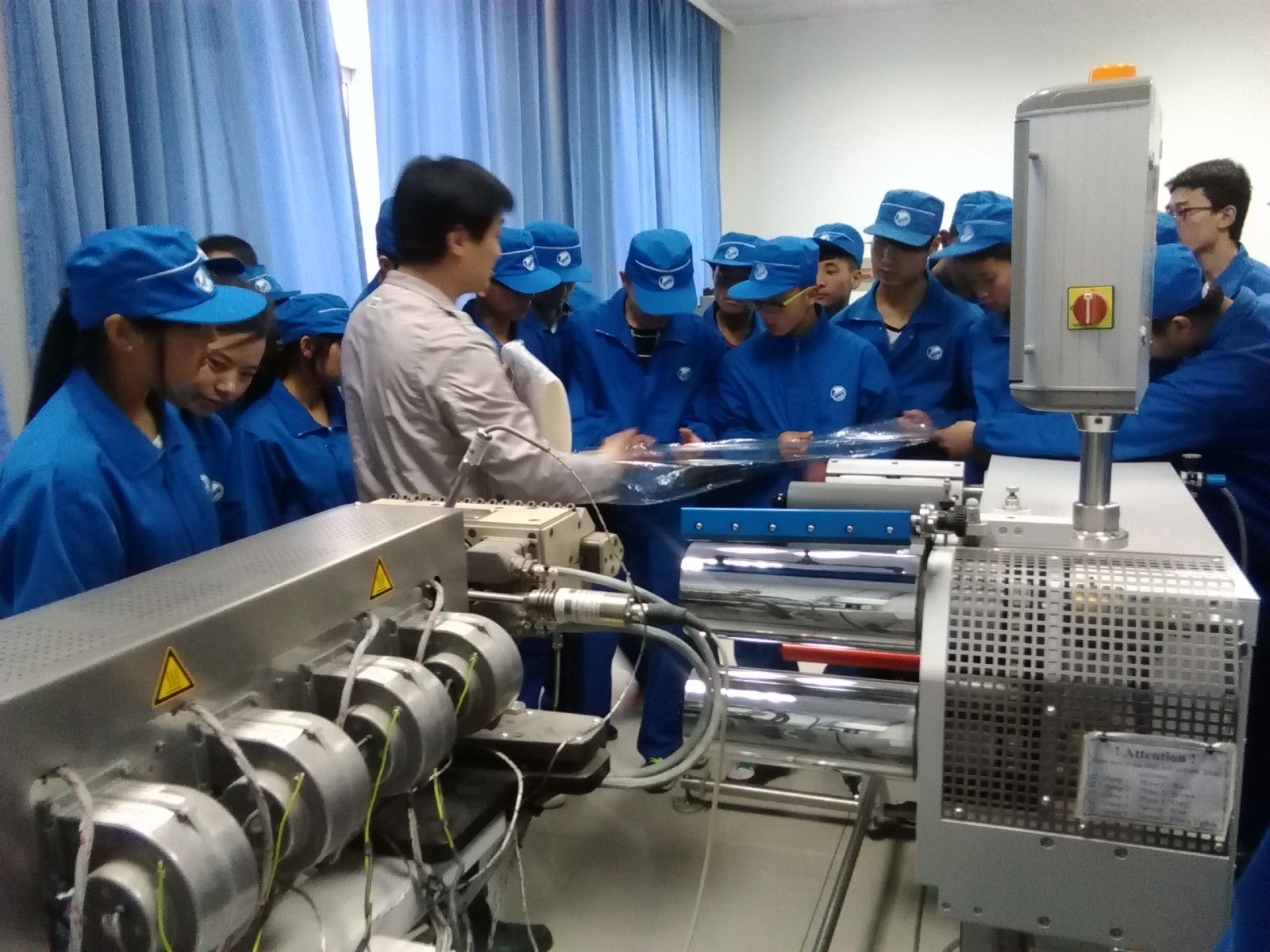 4月1日,石油化学工程系组织2015级高聚物生产专业学生在中石油兰州化工研究院聚烯烃研究所学习,企业兼职教师分别对聚乙烯聚合工艺、聚合物材料挤出吹膜等加工过程和聚合物材料分析检测等内容进行现场教学,并结合高聚物合成与加工综合实训基地教学,形成富有本专业实训特色的实训教学体系,极大地提高了教学效果。
