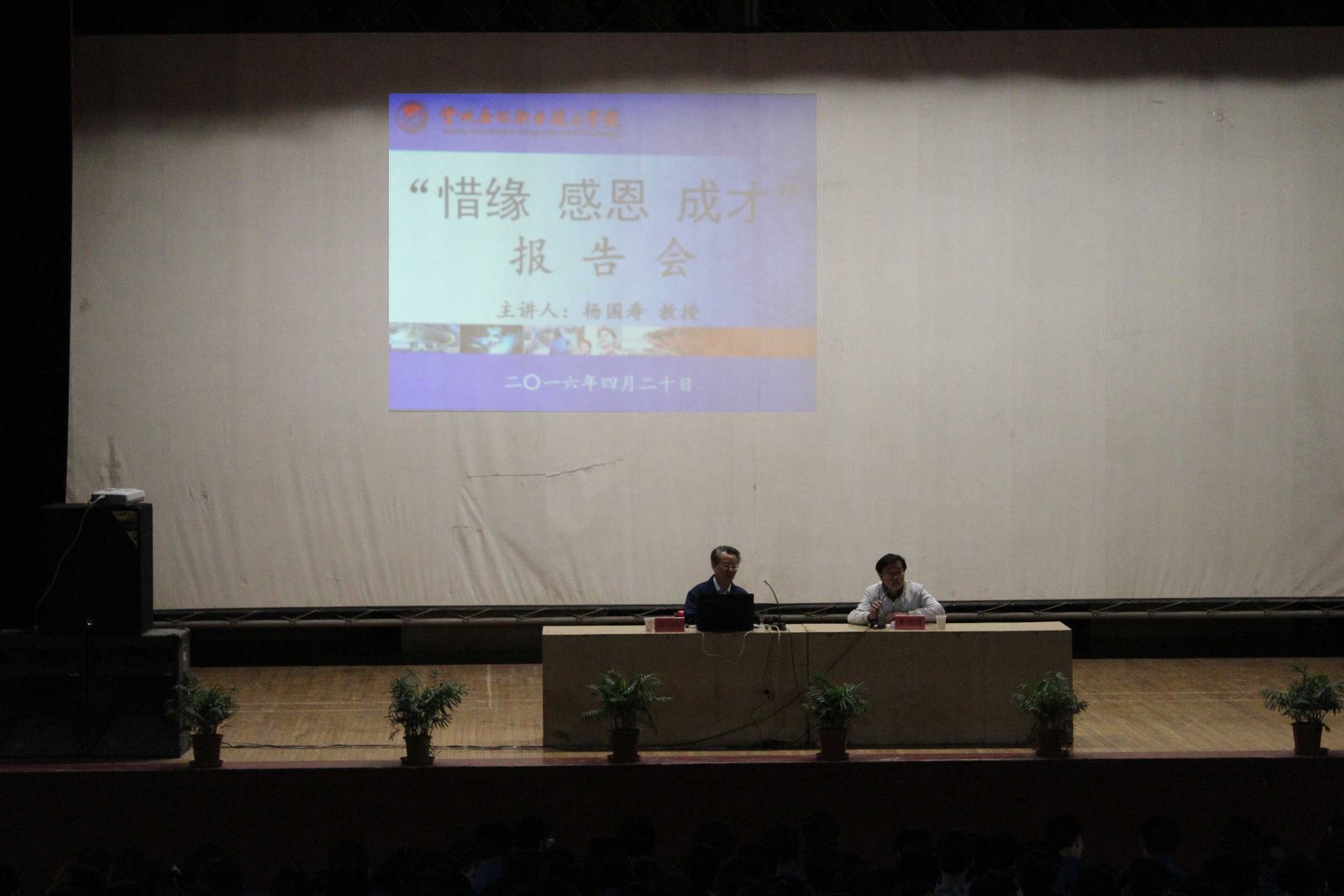 报告会上,杨教授以幽默的语言,给同学们介绍了学院的历史、资源、特色、品牌、声誉。他号召大家要惜缘、惜情、惜福;要知恩、感恩、报恩;要以母校为荣,先做人、后做事,做好人、做好事,学会思考,规划人生,努力成人、成才、成功!最后他教导同学们,无论将来身在何方,都要对母校常怀感恩之心,校荣我荣,校衰我耻。祝愿母校的明天更加美好!