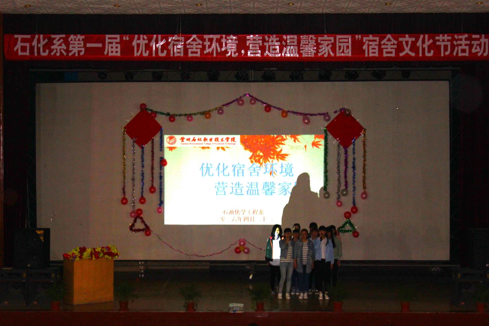 适逢学院六十周年华诞,为提升学生宿舍文化品味,营造健康、活泼、文明的校园生活氛围,石油化学工程系近日举办了为期一周的“优化宿舍环境,营造温馨家园”大学生宿舍文化节活动,石化系15级各班推选出的18个优秀宿舍参加了此次活动。