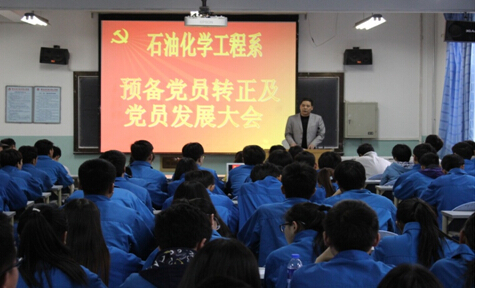 5月25日晚,由石油化学工程系学生党支部组织的“预备党员转正及新党员发展大会”在化工楼隆重召开,大会由系辅导员主持,石化系领导、全体党员、预备党员、入党积极分子代表近160人参加了会议。