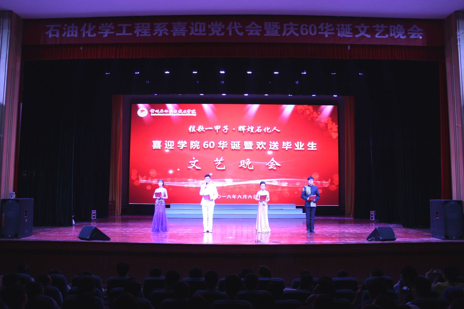 人近花甲尽享福寿满堂,校满六十喜看桃李芬芳。6月6日晚,石油化学工程系“喜迎党代会、欢庆学院60华诞暨欢送毕业生”主题文艺晚会在东区礼堂成功举办。学院领导、石化系教职工及石化系和其他各系1300余名同学观看了此次演出。