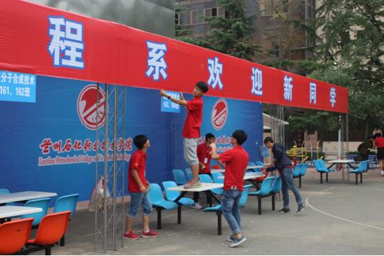 结合往年的迎新经验,石化系提早准备,制定了整齐划一的“分班名单查询处”、“报道卡领取处”、“行李存放处”、“家长休息区”、“各专业班主任处”等标识牌,极大地方便了新生的报到,提高了报到效率。精心制备了“石油化学工程系简介”、“团总支学生会工作风采”、“石化系专业介绍”、“创新创业及技能大赛”、“实训基地建设”、“就业情况”等12块展板以及印有学院办学理念的彩色条幅,把校风、校训、学风、教风全面的展示给初入校园的新同学,让新生全面了解学院文化。通过这些展板、条幅,让各位新生自己即将开始的大学生活有了初步了解。