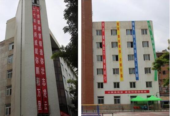 全新的展板 温馨的提示 凝聚学院文化的条幅