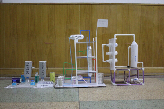 化工工艺流程模型制作是石化系2015级学生假期自我提升计划的内容之一。本次活动共展出了板式精馏塔模型、铜-BX分子筛脱硫醇流程模型、城市生活污水处理流程模型、列管式换热器模型等总计18件作品。所有作品均由15级各班同学利用废弃的纸板、饮料瓶、PVC水管等材料制作而成,每一件模型都制作精美,结构合理,符合化工工艺基本原理。展出过程中,同学们相互交流,相互提高,相互点评。最终,经过老师和同学们的评选,石化155班等三个班的模型分获一、二、三等奖。本次大赛激发了同学们的创新精神和学以致用的热情,极大地提高了同学们的动手能力。