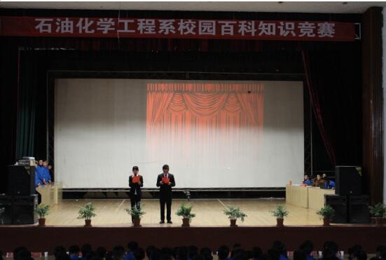 为增强学生对学院规章制度、校史校情的认识和了解,进一步加强校风、学风建设和精神文明建设,10月24日,石油化学工程系在西区礼堂举办校园百科知识竞赛,学生会相关负责人出席了此次活动并担任评委。