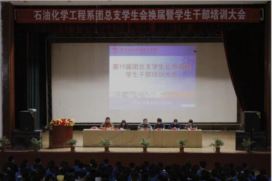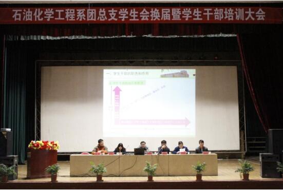 为进一步加强学生干部队伍建设,提高学生干部的综合能力,增强学生干部的服务意识,强化学生干部的工作纪律,石油化学工程系于10月28日晚在西区礼堂召开了第十九届团总支学生会换届大会暨学生干部培训大会,系领导、系辅导员及2015级学生干部、2016级全体学生参加。