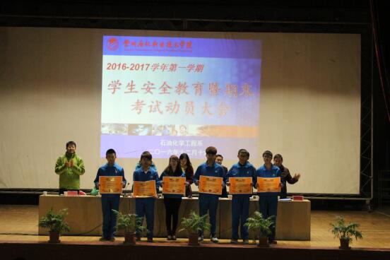 为落实寒假学生工作,树立学生诚信为本的道德观念,营造积极向上的考试气氛,进一步推进学院公平公正的考风考纪建设,12月16日,石油化学工程系在西区礼堂组织开展学生安全教育暨期末考试动员,会。系领导、辅导员及15、16级各班班主任和全系学生参加了会议。