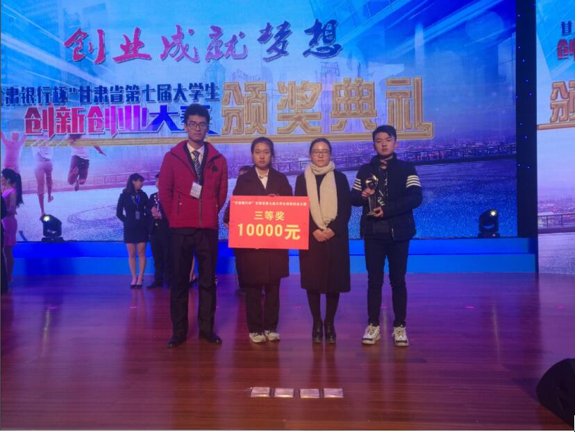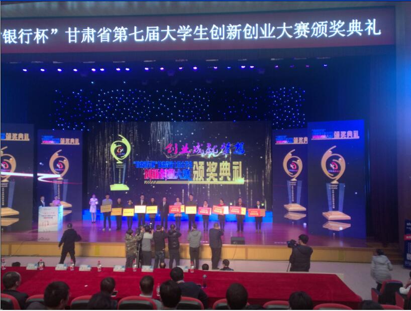 2016年12月24日-25日,由甘肃省科技厅、省教育局、省人社厅、共青团省委、兰州新区管委会、省广电总台等单位共同主办的“甘肃银行杯”甘肃省第七届大学生创新创业大赛复赛、决赛在兰州新区举行。