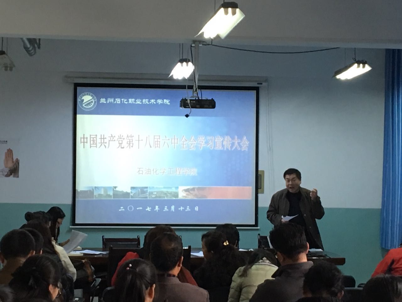 为深入贯彻落实中国共产党第十八届六中全会精神,3月13日晚,石油化学工程学院在化工楼会议室组织开展了第十八届六中全会学习宣传大会。学院党总支书记呼小洲、党总支副书记夏德强及20名教师党员和30余名学生党员参加了此次会议。