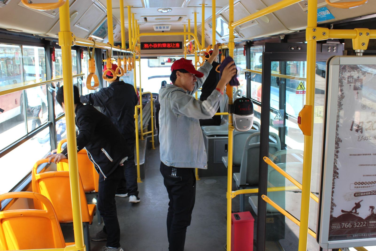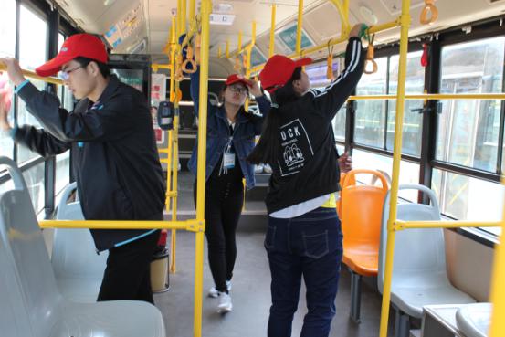 下午两点的天气稍微有点热,但这并没有影响到同学们的积极性。活动一开始,同学们便以积极的态度和饱满的热情投入到了劳动中。有的同学提水,拖洗公交车的地板,对车内凳子和窗户上的灰尘进行了仔细的擦拭,重点对车内的每个死角进行了彻底的清理;有的同学则帮坐公交车的人提行李箱,搀扶行动不便的老人上车。经过两个多小时辛勤劳动,车站的每一辆公交车都焕然一新,同学们的辛苦劳动赢得了车站工作人员和乘客的一致好评。本次志愿服务活动不仅让同学们体会到了环卫工人的辛苦,提高了学生的环保意识,更重要的是,磨练了同学们吃苦耐劳与团结合作精神,提高了学生热爱劳动、热爱公益事业的公德意识。
