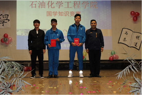 此次竞赛16级各班派两名代表参加,竞赛分为三个环节:基础知识选择题、双人猜谜题、夺分附加题。本次竞赛的试题内容丰富,涵盖知识面广泛,答题形式也个性十足。在基础知识和附加题的选题中,内容上有对先秦诸子的百家学说思想的考察,下有对唐宋年间历史文物的相关信息的考察及明清时期国家的政治方针、社会格局、风土人情的考察。在猜谜题的解答中,首次选用一人面对谜底进行讲解、表演,一人背对谜底猜成语的答题方式。选手们生动的手语表演掀起了比赛的高潮,博得了台下观众的阵阵掌声。经过激烈的角逐,最后炼油162的选手们凭借出色的发挥夺得本次竞赛的的桂冠。本次竞赛的成功举办使同学们对中国的古典文化有了进一步的了解,促进了同学们对国学知识的求知欲,增长了大家的知识面,也使“一学一做”精神在青年学生中得到了更好的贯彻。