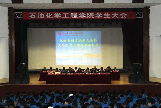 4月21日晚,石油化学工程学院在西区礼堂召开了纪律整顿月表彰暨科技文化月活动启动大会,学院领导、全体班主任和15、16级全体同学参加了本次会议。