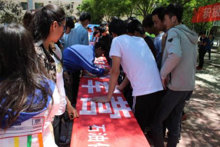 为响应国家大学生入伍的号召,实现“强军梦”,5月13日中午,石油化学工程学院在喷泉广场举办以“积极响应祖国号召,主动踊跃报名参军”为主题的大学生应征入伍宣传活动。学生们积极响应,活动现场热闹非凡。