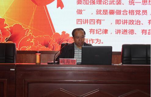 培训会上,魏海明主要从“两学一做”的学习教育,以尊崇党章,尊守党课为基本要求,以用习近平总书记系列重要讲话精神武装全党为基本任务,强调基础在学,关键在做。“两学”就是学党章党规重在明确基本标准,树立行为规范,学系列讲话主要加强理论武装,统一思想行为。“一做”就是要做合格党员,要求做到“四讲四有”,即讲政治、有信念,讲规矩、有纪律,讲道德、有品行,讲奉献、有作为,他引经据典,旁征博引,让同学们深刻地体会到如何做一名合格党员,在讲到政治信念时,魏海明一再强调,这是党的本质特征和突出优势,要做到这一点,必须具备全心全意为人们服务的意识,要有为人们服务的本领,切实将其落到实处,这就要求大家要努力学习,做好现在要做的每一件事。此次培训为同学们上了一堂很有意义的党课,大家纷纷表示获益匪浅,也因此而更加坚定了入党的信念。