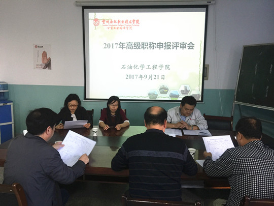 职称评审工作是我院人事重点工作之一,石化院学术委员会各位委员老师认真履行职责,仔细研究《〈甘肃省高等学校教师高级职务任职资格评审条件〉的通知》(甘人职[2015]78号)和《兰州石化职业技术学院专业技术职务任职资格评聘办法(修订稿)》(院发[2010]80号)文件中的相关评审条件及程序,严格按照评审条件与推荐程序,以严肃、客观、公正的态度对申报人员的相关材料进行了审查,最终按学校要求完成了初评工作。