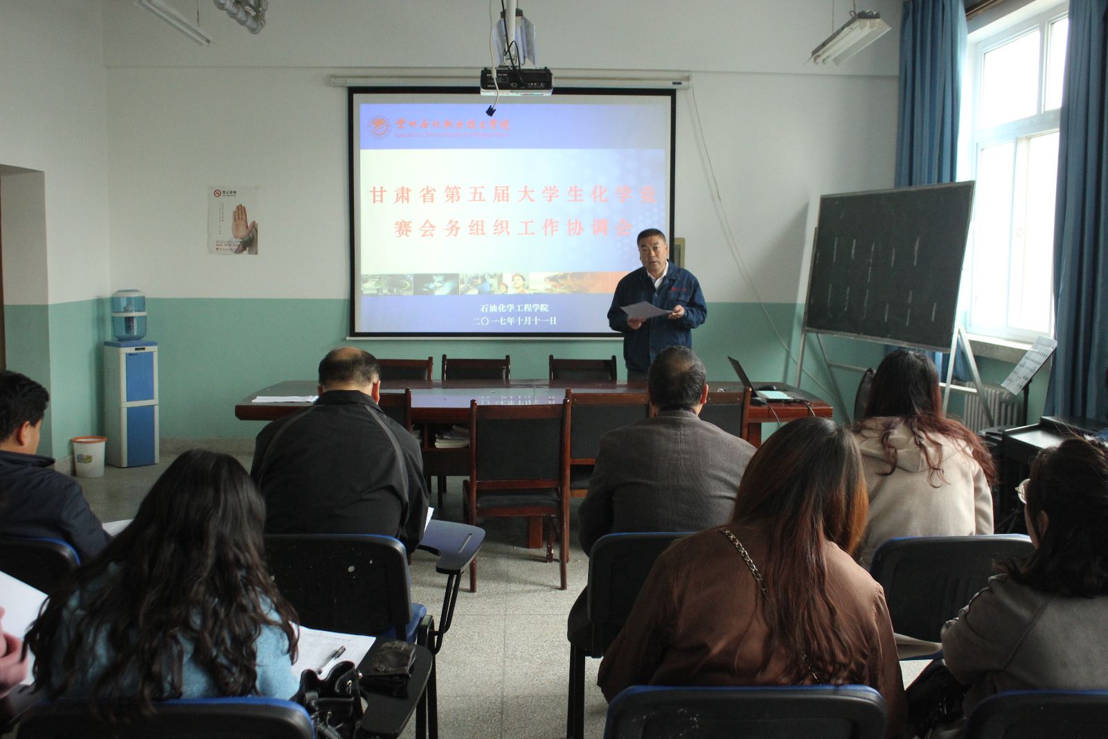 为了迎接即将到来的甘肃省第五届大学生化学竞赛,石油化学工程学院于10月11日下午在化工楼会议室召开了甘肃省第五届大学生化学竞赛会务组织工作协调会。石油化学工程学院总支书记呼小洲、院长助理赵立祥、郑晓明等20多位教师组成的化学竞赛会务组全体成员参加了此次会议。