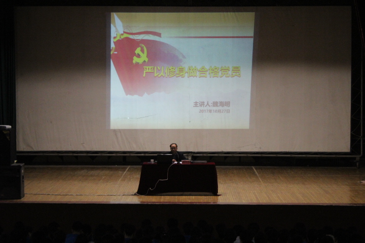 11月2日晚,石油化学工程学院2017级入党积极分子参加了党的基本知识培训第四讲,学校党委委员、组织人事部部长魏海明应邀给石化、应化、信控学院共计1100余名入党积极分子讲授了《严以修身做合格党员》专题党课。