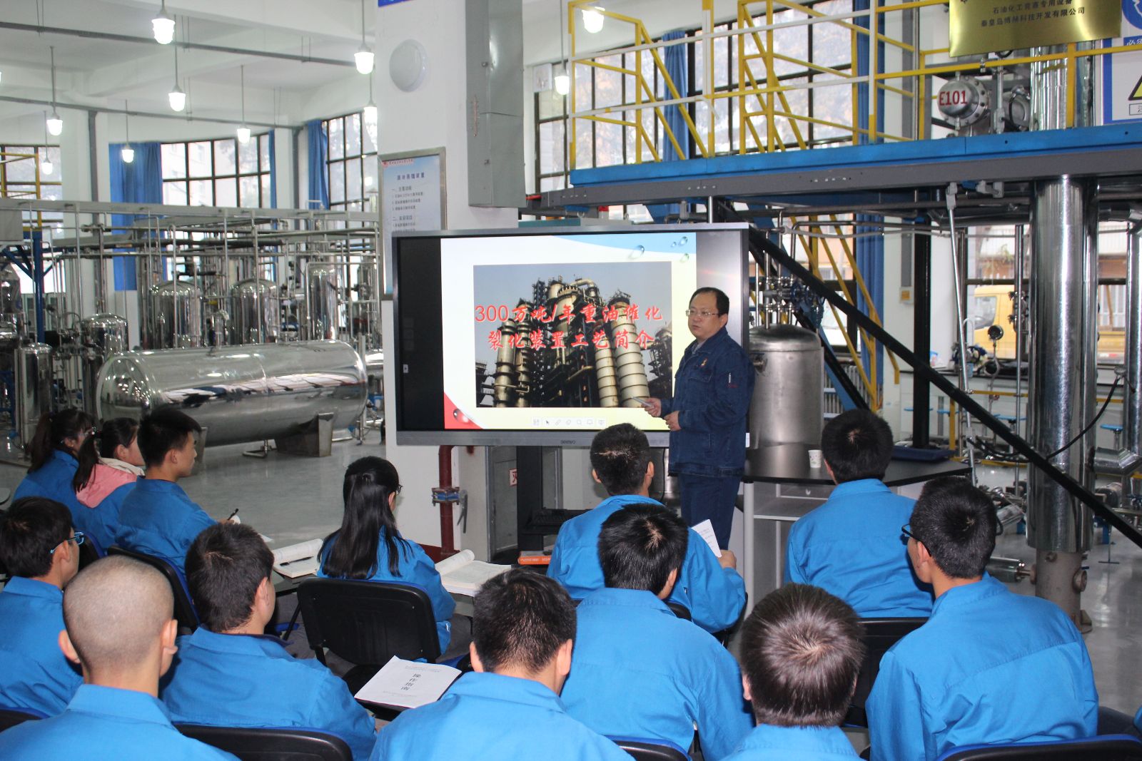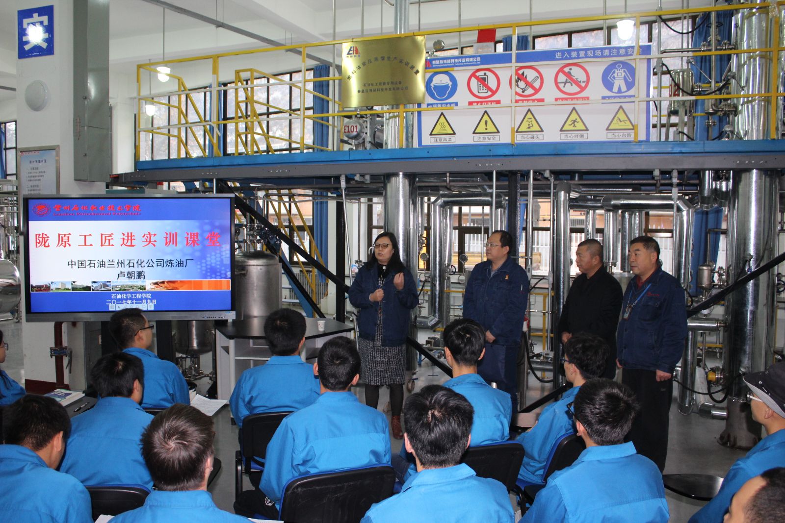 根据学校陇原工匠共聚石化学院行动的时间安排,11月9日下午,石油化学工程学院在第四工业中心邀请全国劳动模范、陇原工匠卢朝鹏进实训课堂活动,石油化学工程学院院长李薇、党总支书记呼小洲以及石油炼油专业带头人、骨干教师、2015级炼油专业学生参加此次活动。
