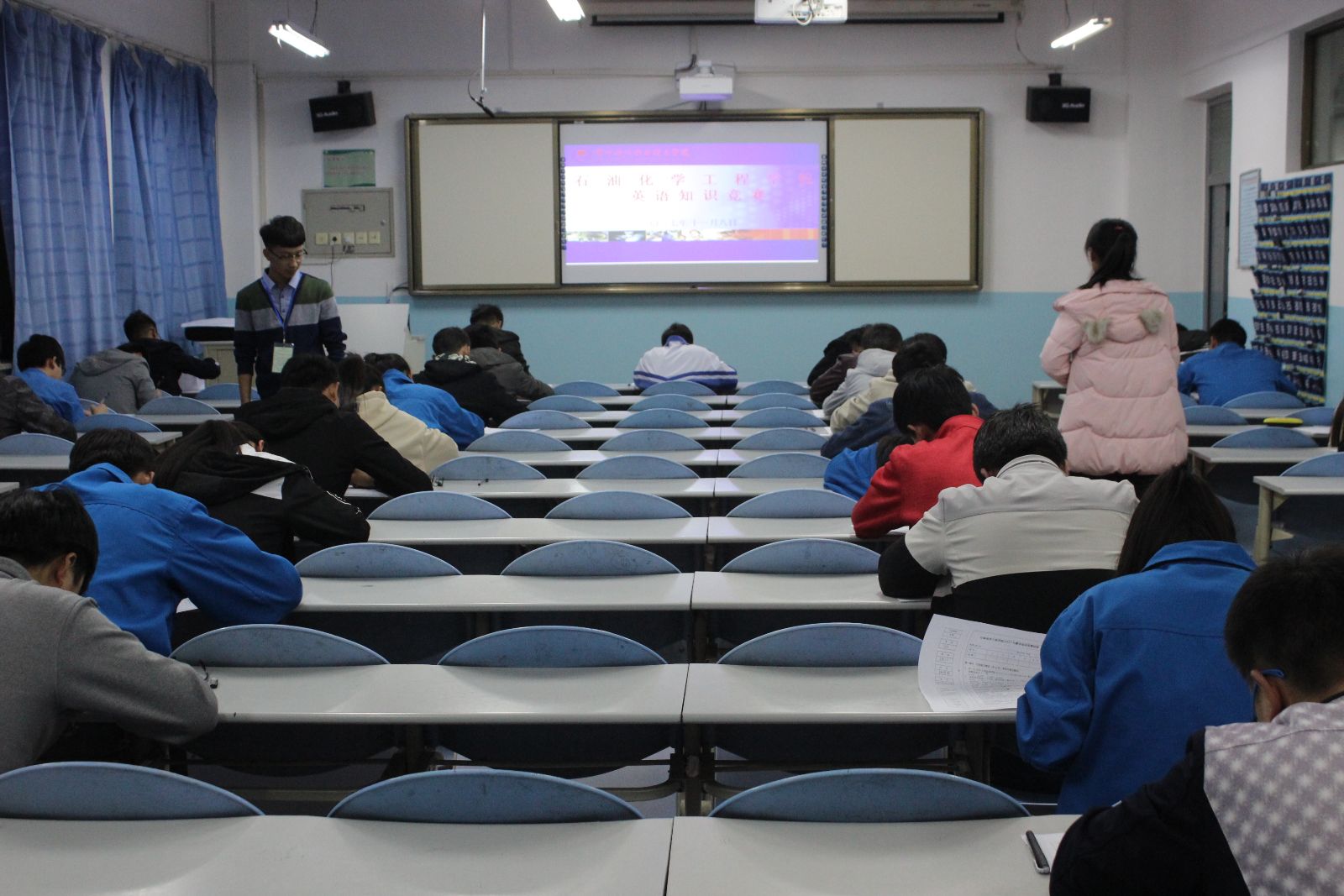 为激发学生学习英语的兴趣,丰富学生词汇量,提高学生的英语综合素质,石油化学工程学院于11月 12日,在综合楼各班自习室举行了英语知识竞赛。学院2017级大一全体新生参加了此次竞赛。