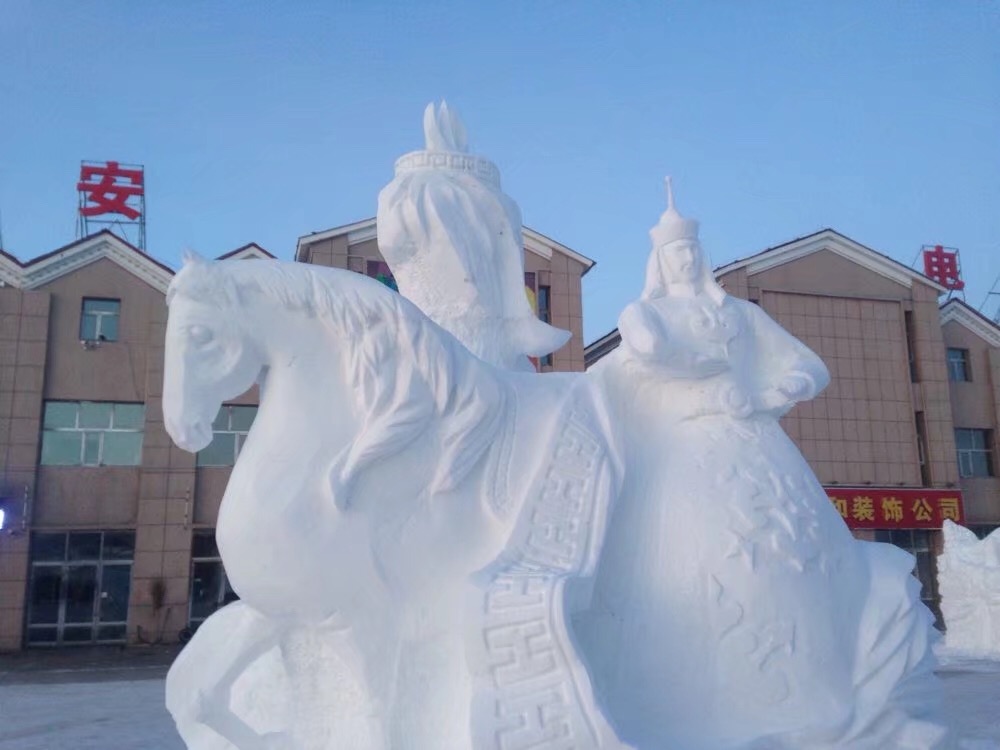 我校参赛选手在零下三十多度的恶劣环境下,手拿雪铲、线锯等工具围着雪坯“大显身手”,在短短的三天内,他们顺利的完成了作品,并将其打造成20多件作品中为数不多的带有民族特色的艺术品。作品《草原之舞》表现草原文化的奔放与热情,用写实的手法表达草原人民对美好生活的向往和追求,并荣获大赛优秀奖。