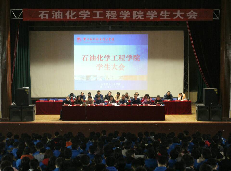 为营造积极向上的考试氛围、落实寒假学生工作,进一步推进学院考风考纪建设,12月13日石油化学工程学院在西区礼堂组织开展学生大会,本次会议由学院党总支书记呼小洲主持。学院领导、辅导员、16、17级各班班主任和16级学生代表、17级全体学生参加了此次会议。