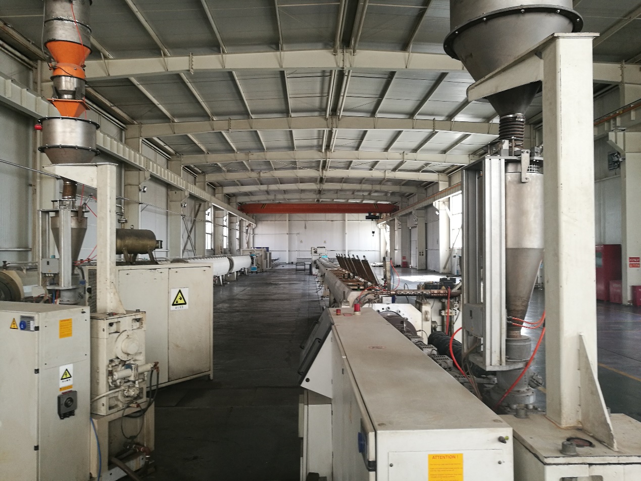 进入公司厂区,张吉庆总经理首先带领教师一行到燃气管道生产车间,参观挤出工艺生产高密度聚乙烯燃气管道的生产线。生产线设备全部是来自德国克劳斯马菲公司的进口设备,设备先进,自动化程度高,工艺控制精确,能耗低。张总经理一路沿着生产线,细致地向老师们讲解了原料处理、设备操作、工艺控制指标和产品参数;随后又走进管道性能检测中心,讲解了各类管道热力学性能的测试仪器和方法。整个参观过程使老师们的专业知识与生产实际紧密对接,极大地提升了老师们的专业能力。
