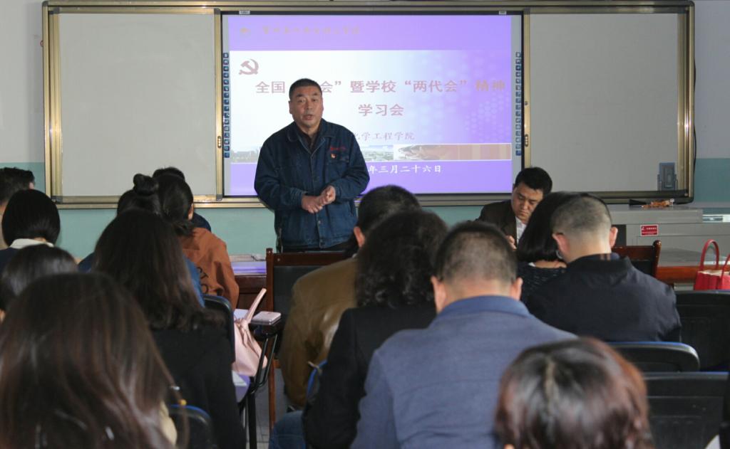 为了积极响应“两会”精神,切实将党的指导新思想在学校教师工作中贯彻落实。石油化学工程学院于近日举行全国“两会”暨学校“两代会”精神学习会。分院党总支书记主持此次会议,石油化学工程学院全体教师参加了此次会议。