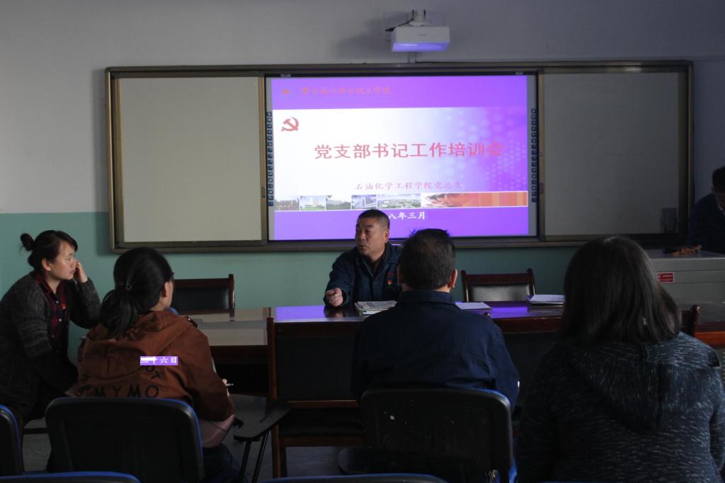 为加强学校改革和发展措施的实施,提高教工党性,督促分院行政全面完成教育教学的各项任务。石油化工工程学院党总支于近日在化工楼309召开党支部书记培训会,出席会议的有党总支书记以及各党支部书记、支部委员。