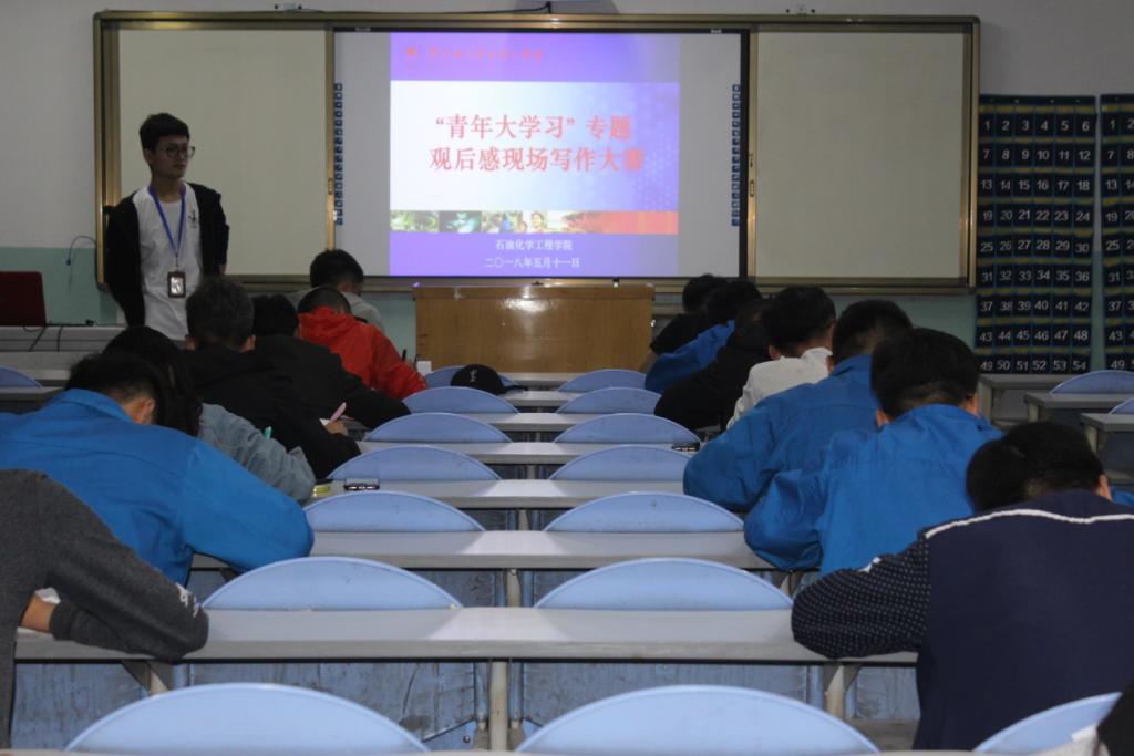 为了加强学生写作能力,丰富学生课余生活。石油化学工程学院响应总院团委“青年大学习”的号召近日于化工楼207开展以青年大学习、我心中的十九大为主题的“新闻报道”现场写作大赛。17级50余名学生参加了此次活动。