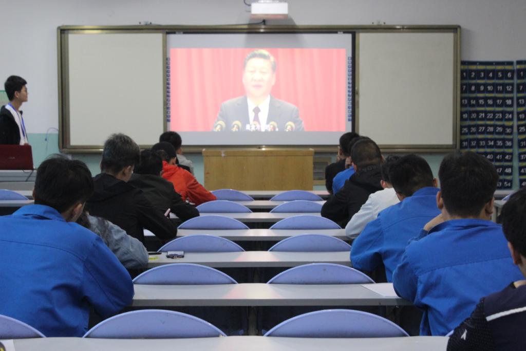 据悉,参加此次比赛的选手都是在各班初赛的基础上选拔出来的优秀选手。晚上7点30分活动正式开始。此次比赛本着公平、公正、公开的原则。赛选手在现场观看了电影《厉害了,我的国》,就观看的电影内容结合十九大写一篇我心中的十九大。参赛选手聚精会神的观看电影,不放过每一处细节,并记录下电影中的重要内容。