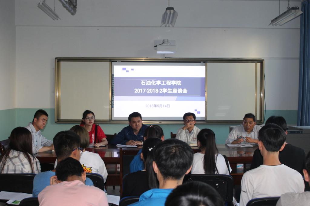 为了加强学院学风建设,进一步完善学生日常管理制度,加强教学管理,了解学生日常生活问题。5月14日石油化学工程学院召开2017-2018-2学生座谈会,院长助理赵立祥、郑晓明、团支部书记、教学秘书及辅导员出席了此次座谈会,16级、17级各班班委参加了此次座谈会