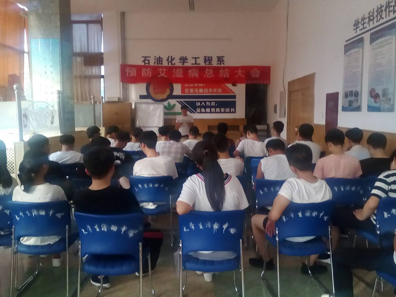为普及宣传艾滋病防控知识,增强大学生对艾滋病的防护意识。石油化学工程学院于近日在西区大学生活动中心中心开展了“艾滋病防控”总结大会,参加此次会议的有17级部分学生。