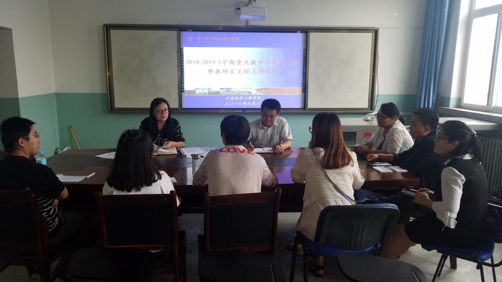 9月3日下午,石油化学工程学院在石化楼会议室组织召开本学期重点教学工作推进会,各教研室主任参加了会议,会议由院长李薇主持。